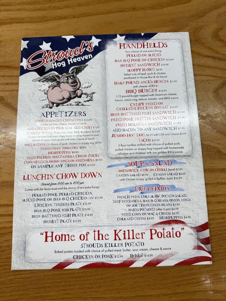 Hog Heaven Bar B-Q offers an extensive menu with a focus on traditional barbecue dishes. Highlights include slow-smoked pulled pork, BBQ chicken, and baby back ribs. The menu caters to various tastes, offering delectable sides like chili cheese fries and homemade Brunswick stew.